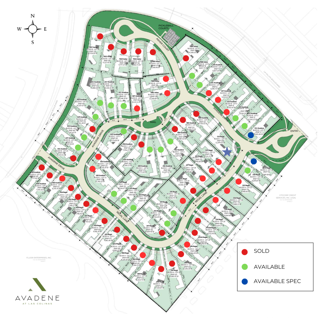 Avadene at Las Colinas is a new premium gated community with 73 custom homesites. The development is 22 acres located at the corner of Las Colinas Boulevard and La Villita Boulevard. This luxurious neighborhood has meandering walking trails mixed with unique features such as pickleball courts and a mail center. It also provides residents with convenient access to popular Las Colinas spots including the Toyota Music Factory, the Water Street Irving development, the Las Colinas Country Club, the Nelson Golf & Sports Club at Las Colinas, Campion Trails, Lifetime Fitness, Paws Colinas Dog Park, Bird’s Fort Trail Park, and many more! The neighborhood is 9 miles from DFW International Airport, 12 miles from Dallas Love Field airport, and provides easy access to highways 114, 161, and 635.